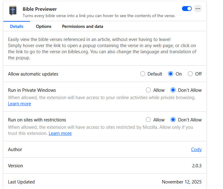 Bible Previewer Browser Extension a browser extension to see the text of verse references in a page on the Internet.